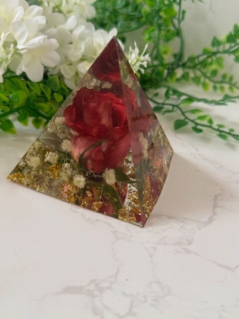 Preserve life’s most meaningful moments with this exquisite Pyramid, defined by its elegant, sculptural form, this luxurious keepsake offers a refined and deeply respectful way to honour weddings, memorials, and other cherished occasions. Each pyramid beautifully showcases preserved flowers within its crystal-clear structure, creating a striking statement piece with enduring grace and sophistication.