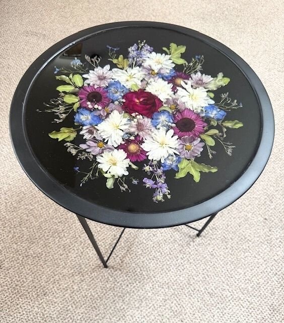 Our exquisite 47cm round resin side table is a bespoke floral furniture piece, meticulously handcrafted to preserve real wedding or memorial flowers within crystal-clear resin. Designed to transform your most cherished blooms into a functional work of art, this statement piece seamlessly blends sentiment with sophistication. Perfect for wedding flower preservation, funeral flower preservation, or as a deeply meaningful memorial keepsake, each table is custom-made using your own flowers, ensuring a truly one-of-a-kind creation. A timeless centrepiece for your home, it beautifully honours treasured memories while elevating your interior with enduring elegance.