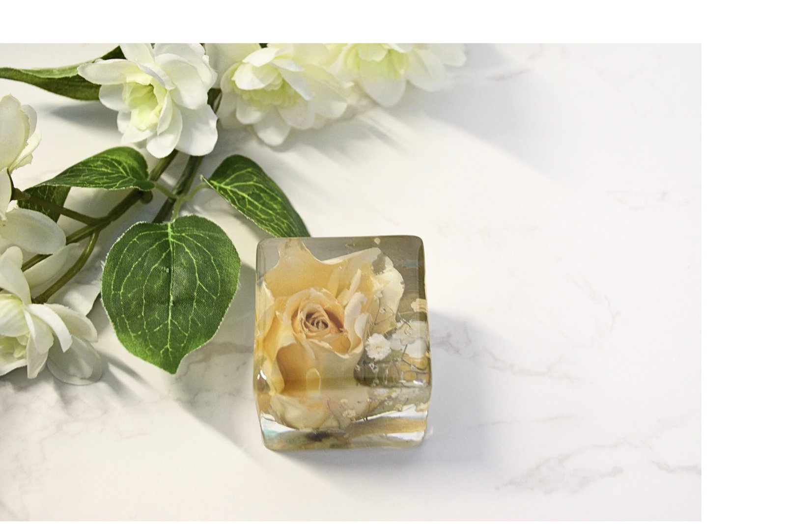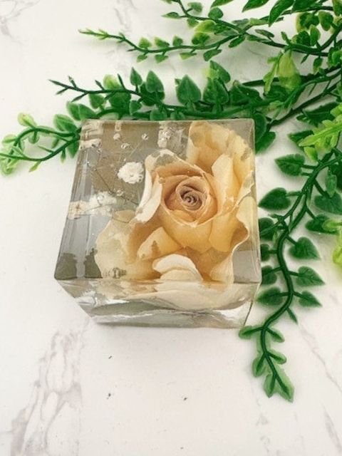 Our 6.5 cm small resin cube offers a beautiful and lasting way to preserve bridal or funeral flowers, creating a timeless tribute filled with meaning and remembrance. Perfectly suited for a single rosebud or delicate blooms, this classic cube design highlights every detail and looks elegant wherever it’s displayed in the home. A refined keepsake to treasure forever.